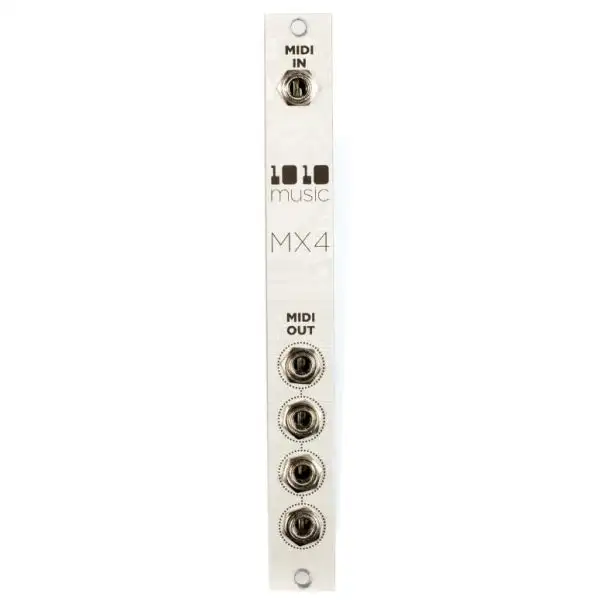 The 1010 Music MX4 Buffered MIDI Multiple serves a very simple but useful purpose: it takes in a single MIDI input and repeats it in realtime to four MIDI outputs. The end result is you can now control four times as many devices from a single MIDI source.