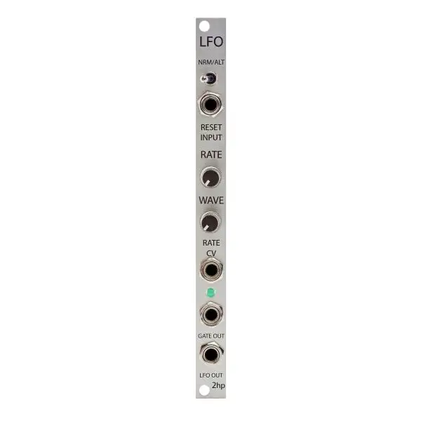 2hp LFO is a voltage controlled, low frequency oscillator. 8 waveforms are available with smooth morphing between each, allowing for complex and unique patterns.