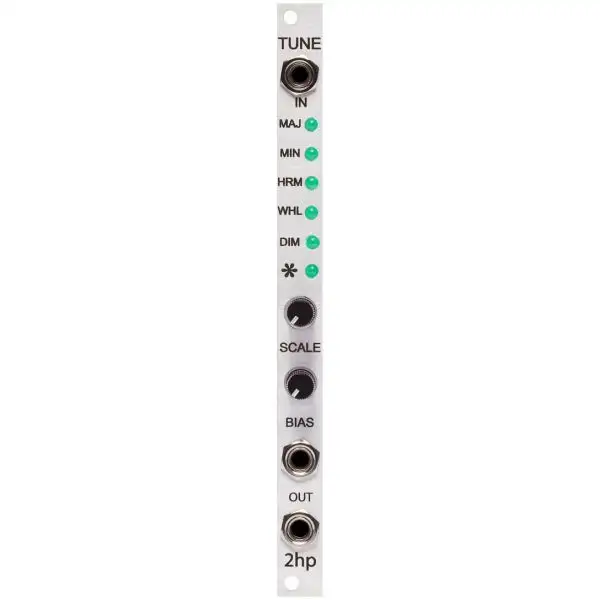 2hp Tune is a multi-scale pitch quantizer. It features 11 scales ranging from chromatic to octatonic with everything in between. In addition, the bias control allows the user to transpose the melody to a different octave or starting note.