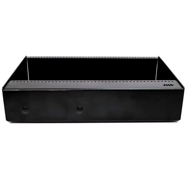 The 4ms Pod48X Unpowered is 48HP with 2″ (51mm) of available module depth. No power supply is included, you must supply your means of powering modules with a DIY power supply or a front-facing module such as the Row Power. Two holes on the rear face are plugged with removable plastic plugs, and can be used for DIY applications.