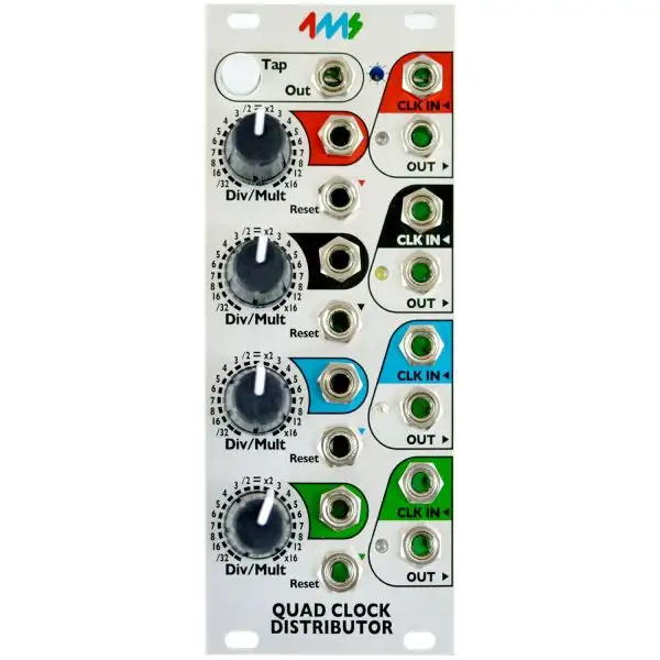 - Tap tempo button and five sync’ed clock outputs make the QCD perfect for head-of-the-chain “Master” clock module