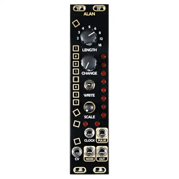 The After Later Audio Alan features the randomness of the Music Thing Modular Turing Machine, shrunk down to 6HP. Alan retains all of the same functionality as the original including the connectors for the expanders.