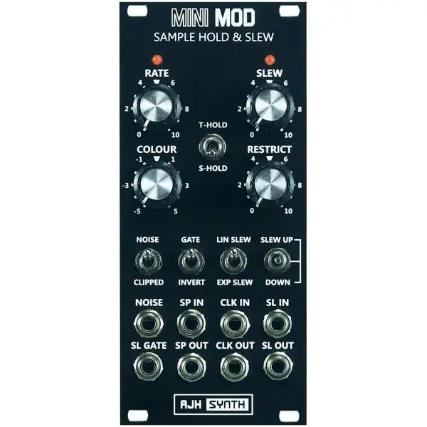 The AJH Synth Sample Hold+Slew is a real powerhouse module that takes up only 12 HP of rack space. It can generate random and pseudo-random control voltages, staircase waveforms, deliberate aliasing of audio signals, portamento type effects, adjustable audio range noise and has many other uses too.