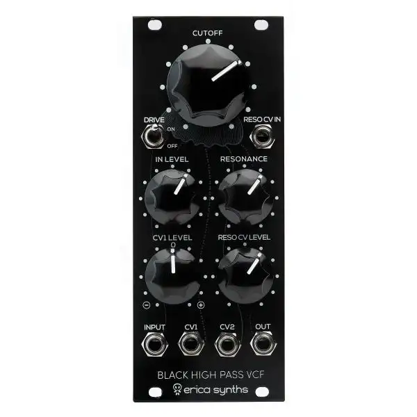 The Erica Synths Black High-Pass VCF is designed for analog purists, who take sound design seriously. It’s highly stable, 24dB/oct resonant high pass VCF with voltage control over cutoff and resonance. Bonus features are built-in post-filter overdrive circuit with user adjustable drive amount and the Black Filter Coupler connector.