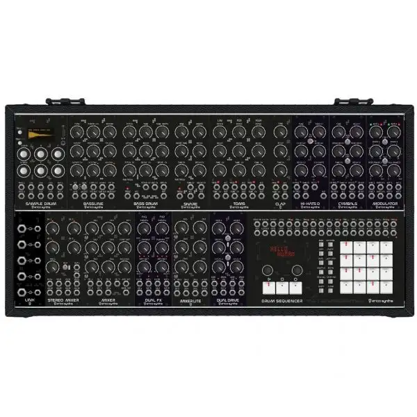 The Erica Synths Techno System is the ultimate tool for rhythm based music production, live performances and sound design. The drum modules are internally patched to the sequencer, so they receive trigger and accent signals even without patching relevant patch cables therefore allowing you to fully focus on the audio signal patching. With a bit of imagination you’ll find that it’s not limited to specific music genres — it just depends on your creativity in patching and settings of modules. The potential is unlimited!
