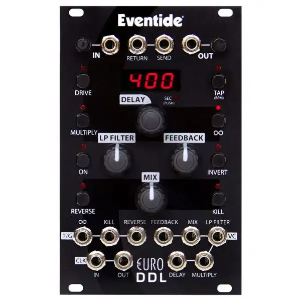 The Eventide EuroDDL Eurorack Delay offers a digital delay with analog sonic characteristics that can be installed directly to your Eurorack Modular Synth. Access external control of every parameter and function as well as CV and other patch points from the front panel.