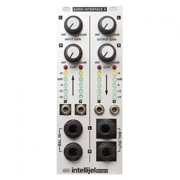- Output path steps a nominal Eurorack level (10Vpp) down to +4dBu with up to +6dB gain.