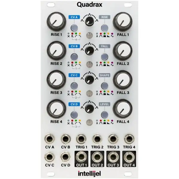 Whether you are exploring the unique channel functions, CV modulation matrix or chaining options, it is quickly apparent that there are infinite possibilities to explore. The Intellijel Quadrax Quad Function/Burst Generator/LFO with CV Matrix is powerful and tactile modulation generator will quickly become the beating heart of your modular system. The Quadrax consists of four independent, CV-controllable channels, each of which can be configured to perform any one of the following functions: