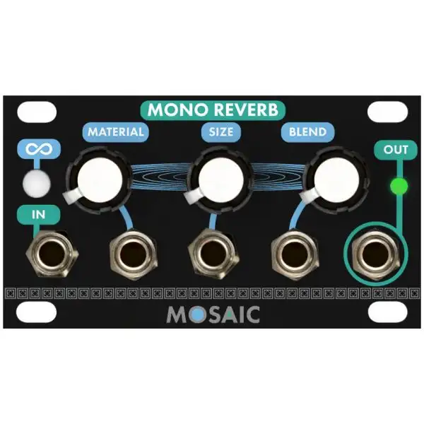 The Mosaic Mono Reverb 1U is an intuitive tool for effects, mixing, or sound design, Reverb is just as versatile as it is beautiful. Create tight rooms or infinite ethereal spaces with access to space material, reverb size, and blend controls. Place it in your effects send, or use it to shape new and interesting sounds with oscillators, samples, and more. Reverb carries big sound in a slim format.