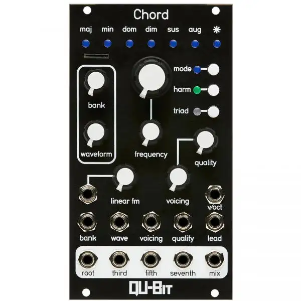 The Qu-bit Chord v2 is a plug and play solution for bringing musical polyphony to your system. It contains four oscillator voices, a multitude of waveforms, and intelligent tuning functionality. This new version features an expanded sonic palette and feature set in half the size of the original.