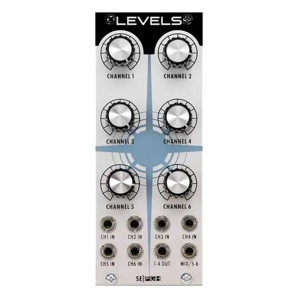 The Studio Electronics LEVELS is a versatile, low-noise six channel summing mixer/attenuator for audio and CV, re-designed by Tim Caswell, which can be used rather effectively in a variety of ways: 6 in 1 out, or two separate mixers: 4 in 1 out, and 2 in 1 out, e. g., when only jacked-in to MIX 5/6 output all input channels pass through; utilizing the 1-4 OUT removes channels 1-4 from the MIX 5/6 output. Handy indeed.