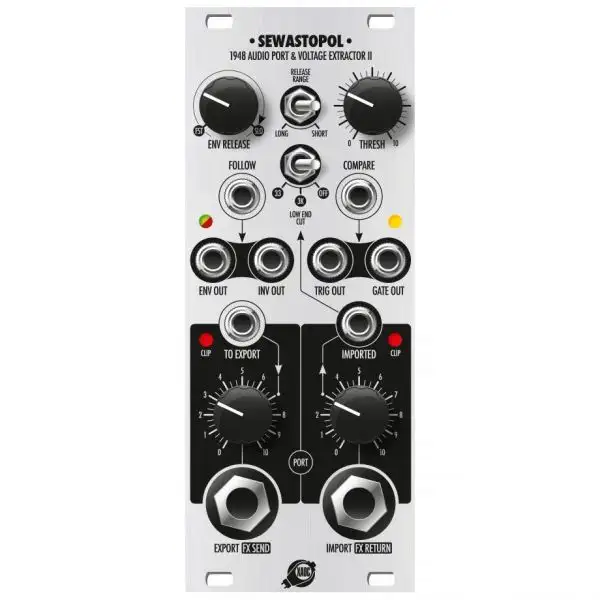 Xaoc Devices Sewastopol II is a multifunction Eurorack module designed for easy interfacing of external gear to your modular environment. It can export line and professional level audio, import audio from instruments and electroacoustic transducers, and analyze the incoming audio to generate voltages and triggers to control your modular system.